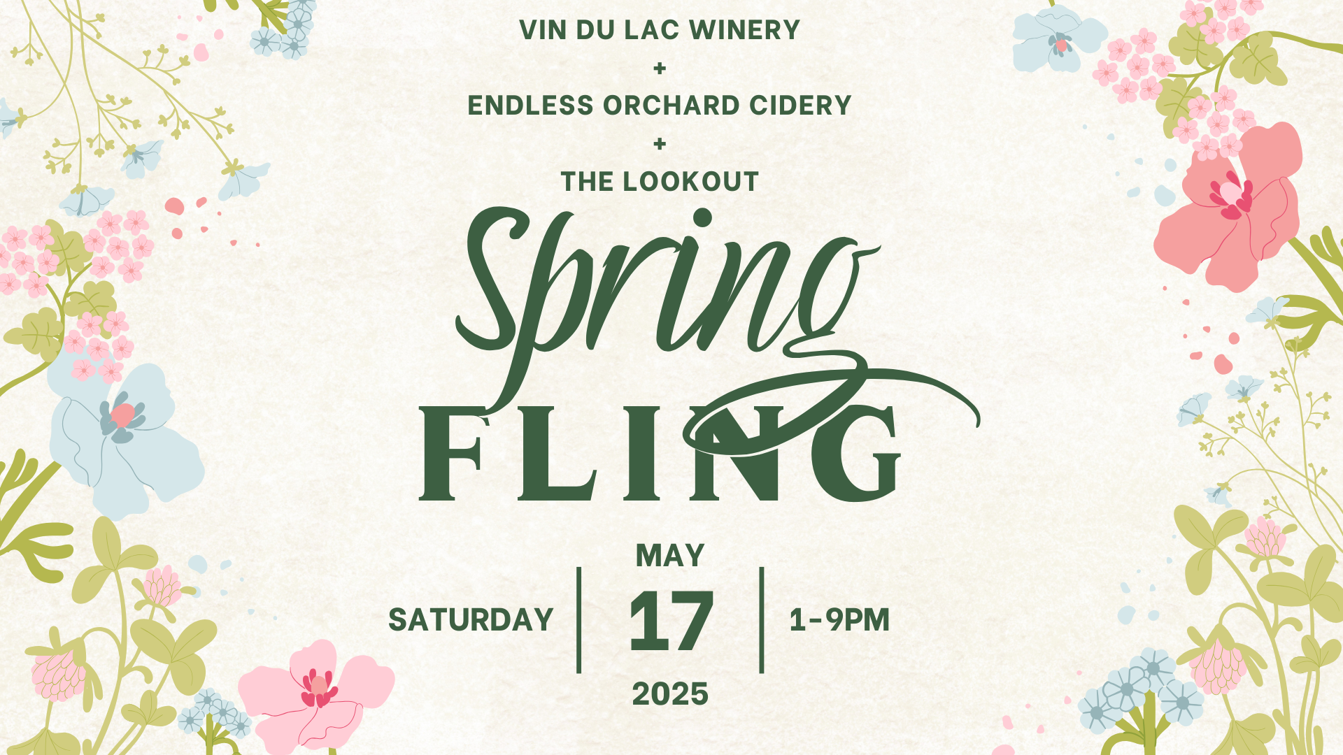 Join us for Spring Fling, a joyful Saturday of sunshine, sips, and spring vibes at Vin du Lac Winery and Endless Orchard Cider