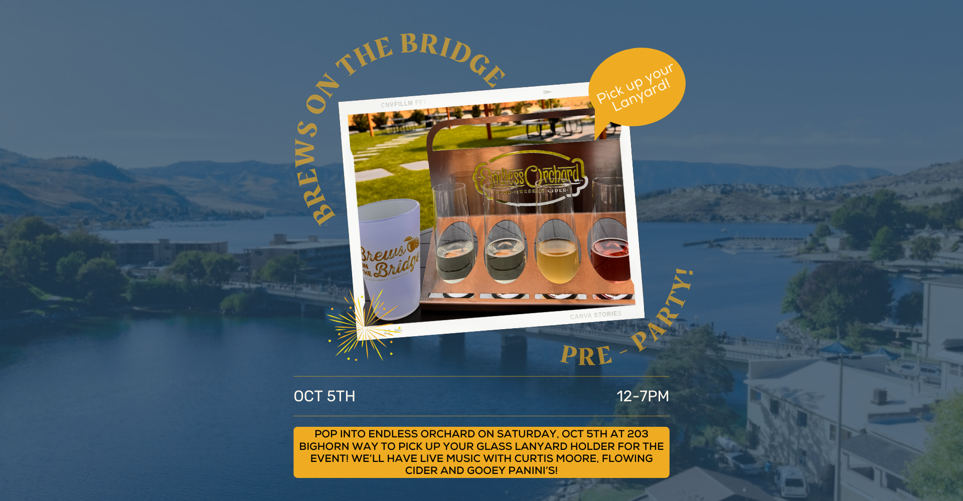 We’re so excited for Chelan’s annual Brews on the Bridge that we decided to host little pre-party! 🎉 Come pick up your drink lanyard for the event at our tasting room Saturday Oct. 5th from 12-7! Enjoy your favorite ciders, live music with Curtis Moore, and of course… our delicious melty panini’s!