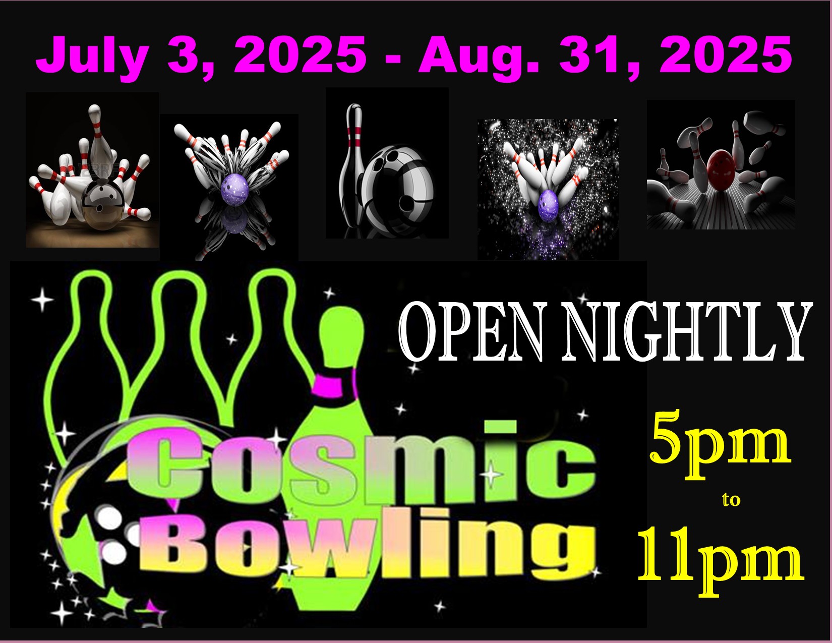 Join Chelan Lanes for black lights, lasers, dance music, arcade games, and tasty food—perfect for family fun!