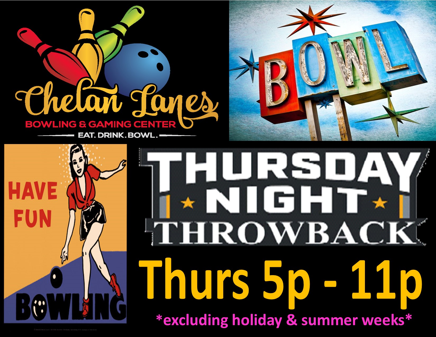 Come in and join us for Thursday Night Throwback Bowling! Discount bowling prices, family fun! For more information, visit ChelanLanes.com