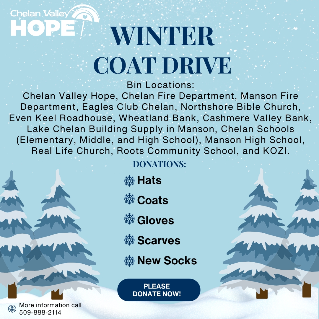 Chelan Valley Hope’s Winter Coat Drive has officially launched for the season!