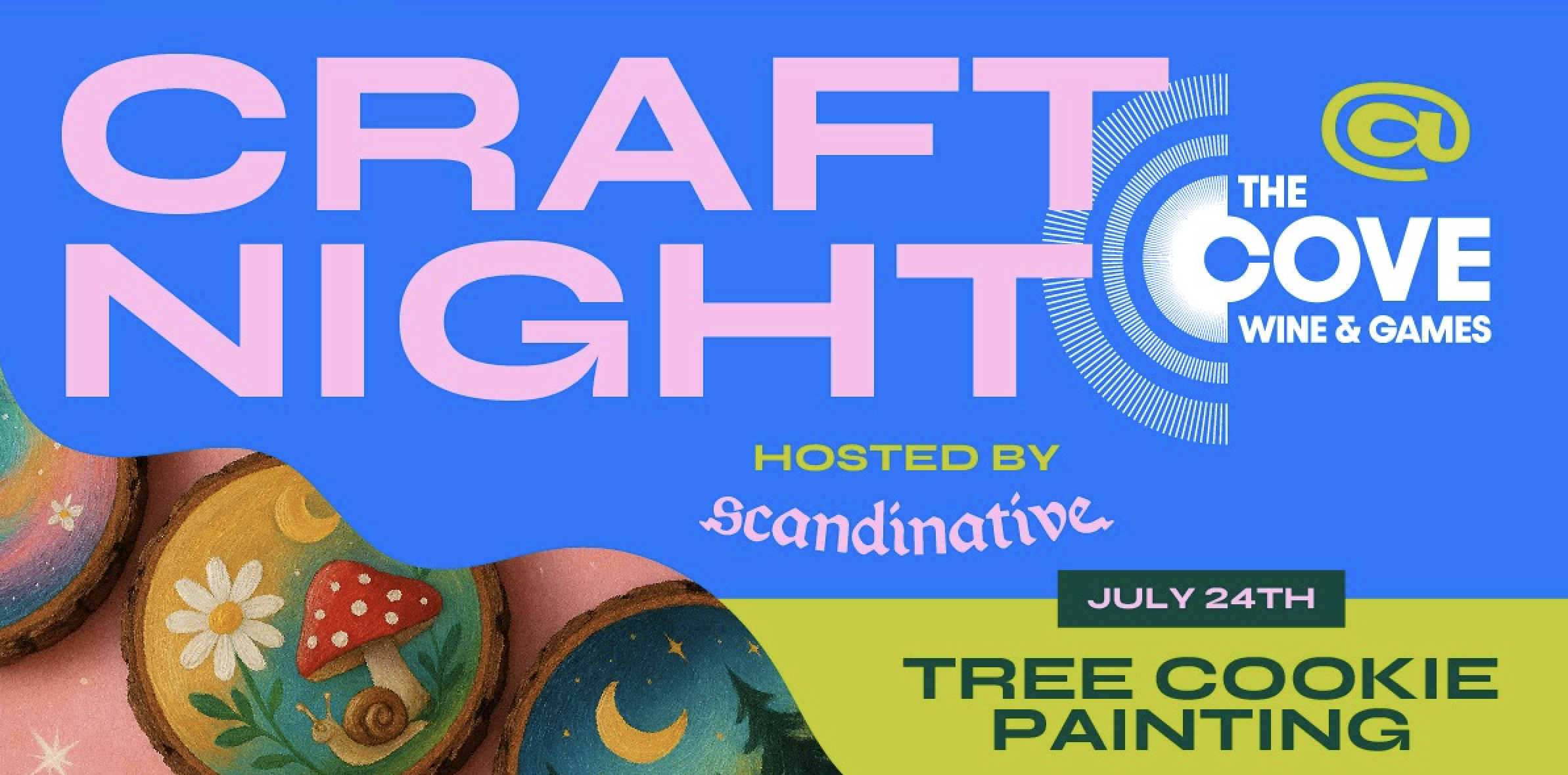 Join us for a cozy, creative evening at The Cove Wine & Gamesas we paint charming little tree cookies—perfect as mini art pieces, gifts, or sweet summer décor. 🌲🎨