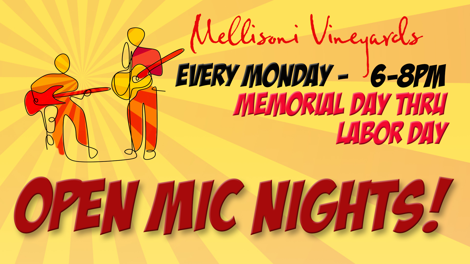 Open mic nights every Monday starting Memorial Day until Labor day from 6 – 8 pm. All ages are welcome!