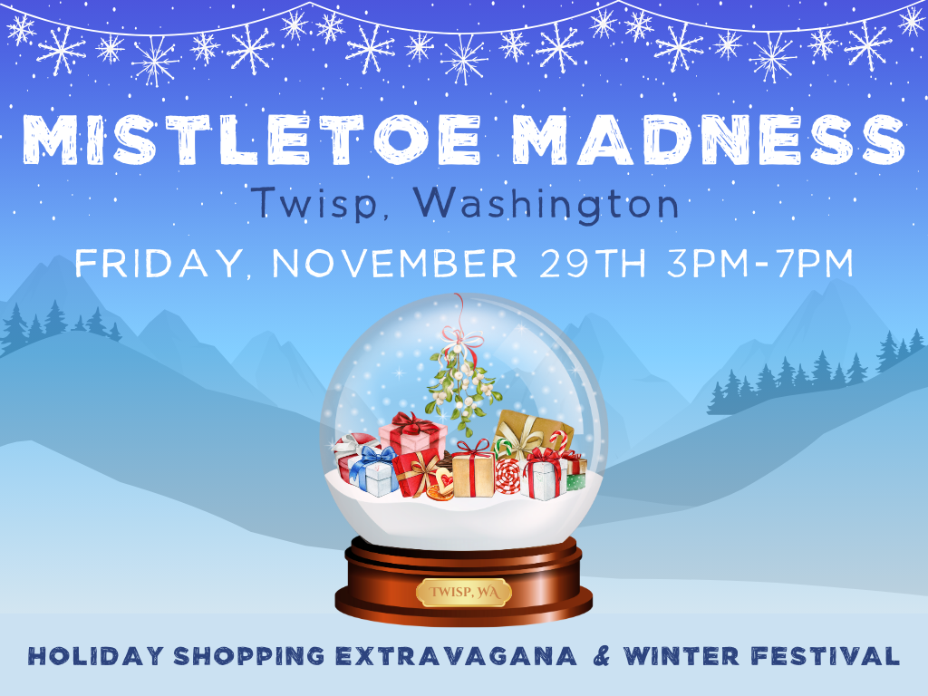 Join us Friday, November 29th from 3:00PM to 7:00PM, and enjoy an unforgettable evening of festivities! Mistletoe Madness is the perfect opportunity to jump into the holiday season in Twisp while finding special gifts for everyone on your list. The beautiful scenery of the Methow Valley provides the perfect backdrop to capture special holiday moments and make unforgettable memories.