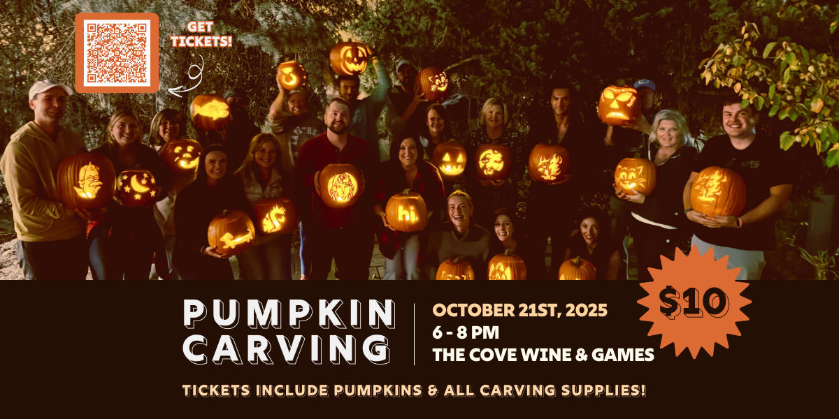 Join us for a festive night of pumpkin carving, wine, & fun at The Cove Wine & Games in Chelan!