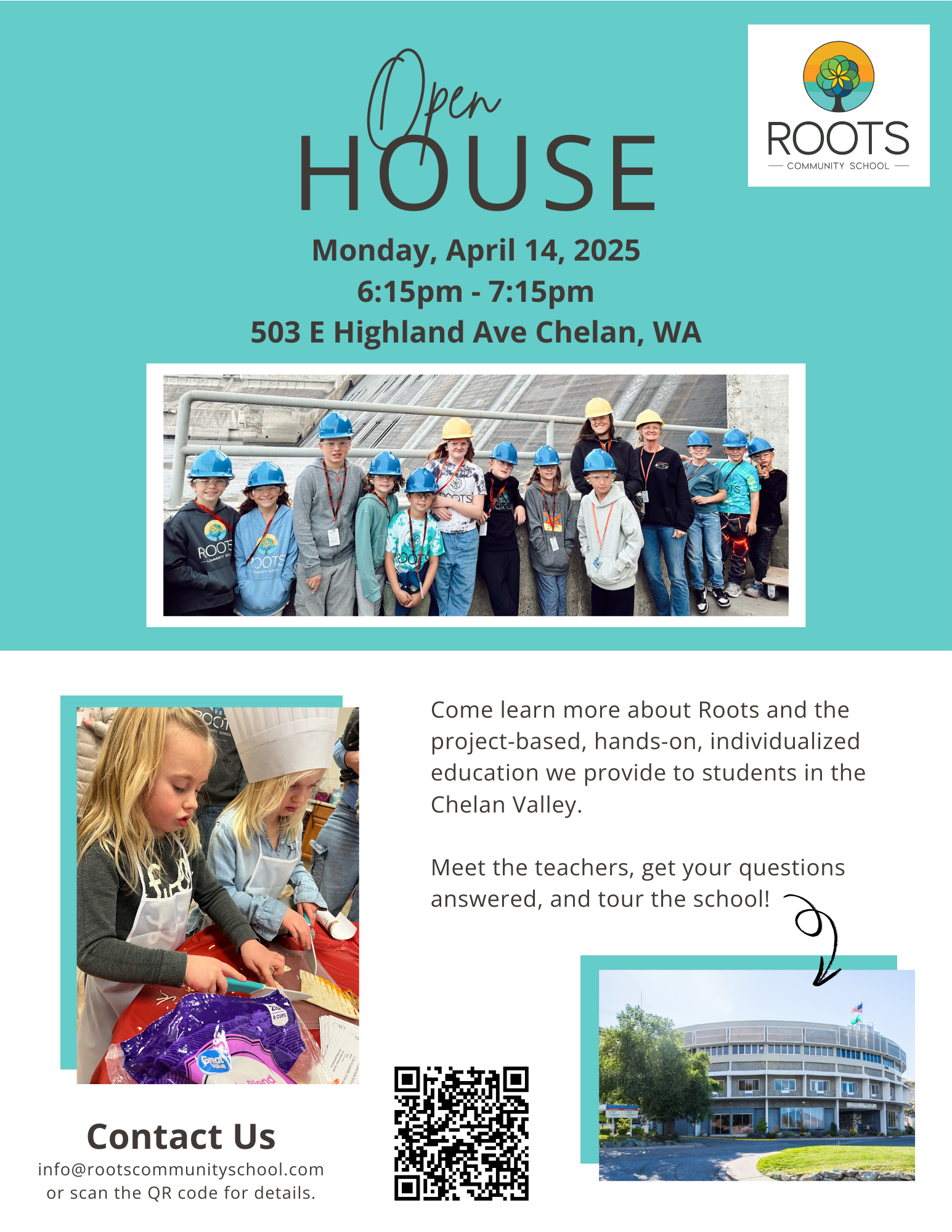 Tour the school, connect with our incredible teachers and staff, ask questions, and learn what makes Roots such a unique and impactful educational opportunity in the Chelan Valley.