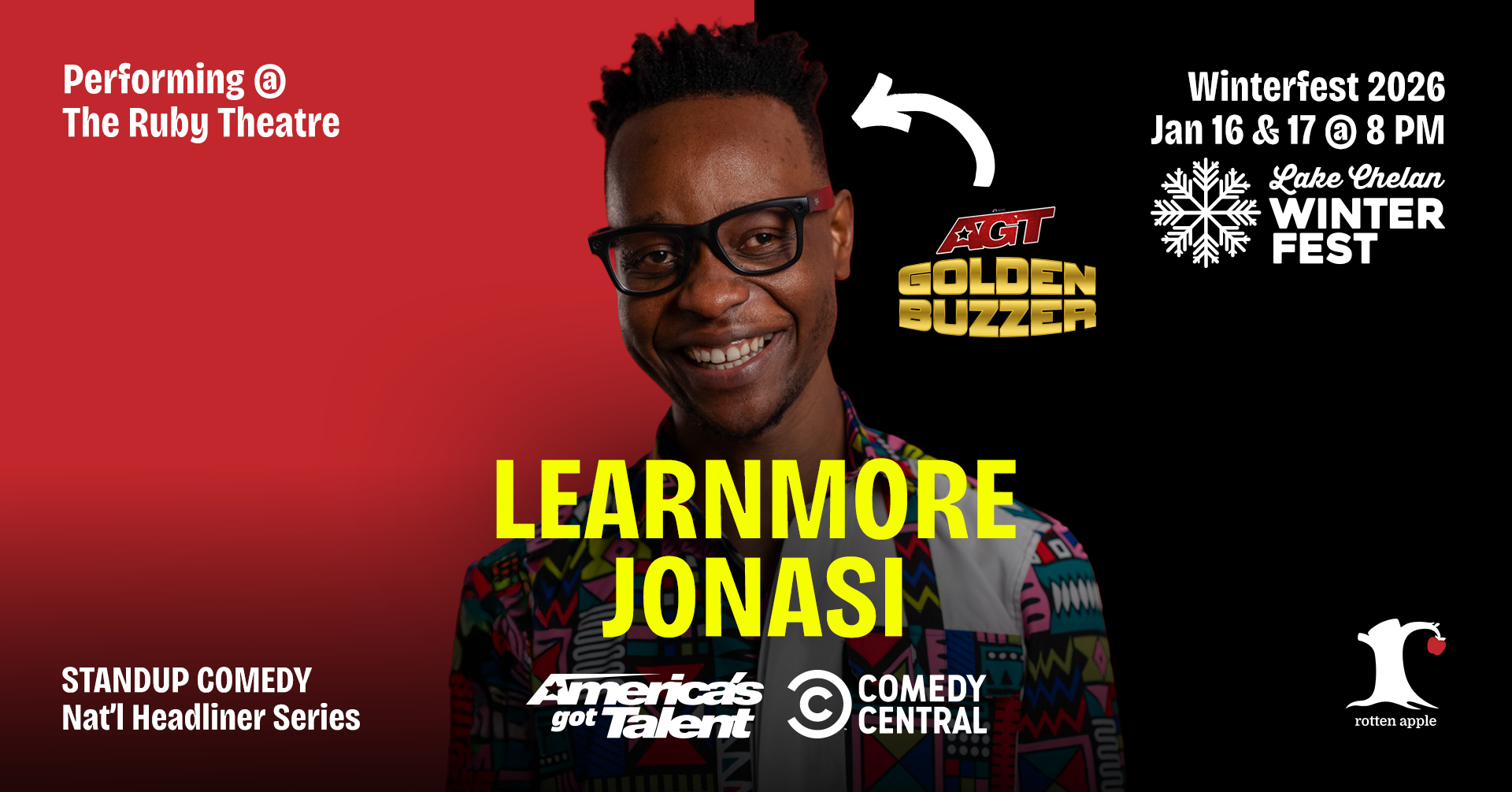 Rotten Apple returns to Chelan’s Historic Ruby Theater with INTERNATIONAL headliner Learnmore Jonasi for TWO NIGHTS on Friday, January 16th and Saturday, January 17th!