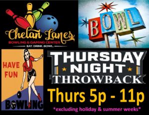 Come in and join us for Thursday Night Throwback Bowling! Discount bowling prices, family fun! For more information, visit ChelanLanes.com