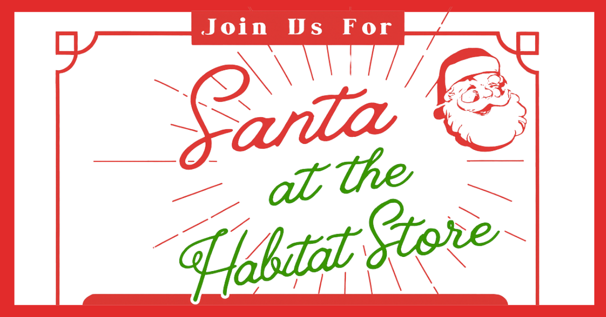 Bring the whole family for a festive and free visit with Santa at the Habitat Store! Take your own photo and enjoy treats and holiday cheer while supporting affordable homebuilding in our community. Kids can complete coloring pages while you shop the Store for holiday deals Make magical memories while making a difference.