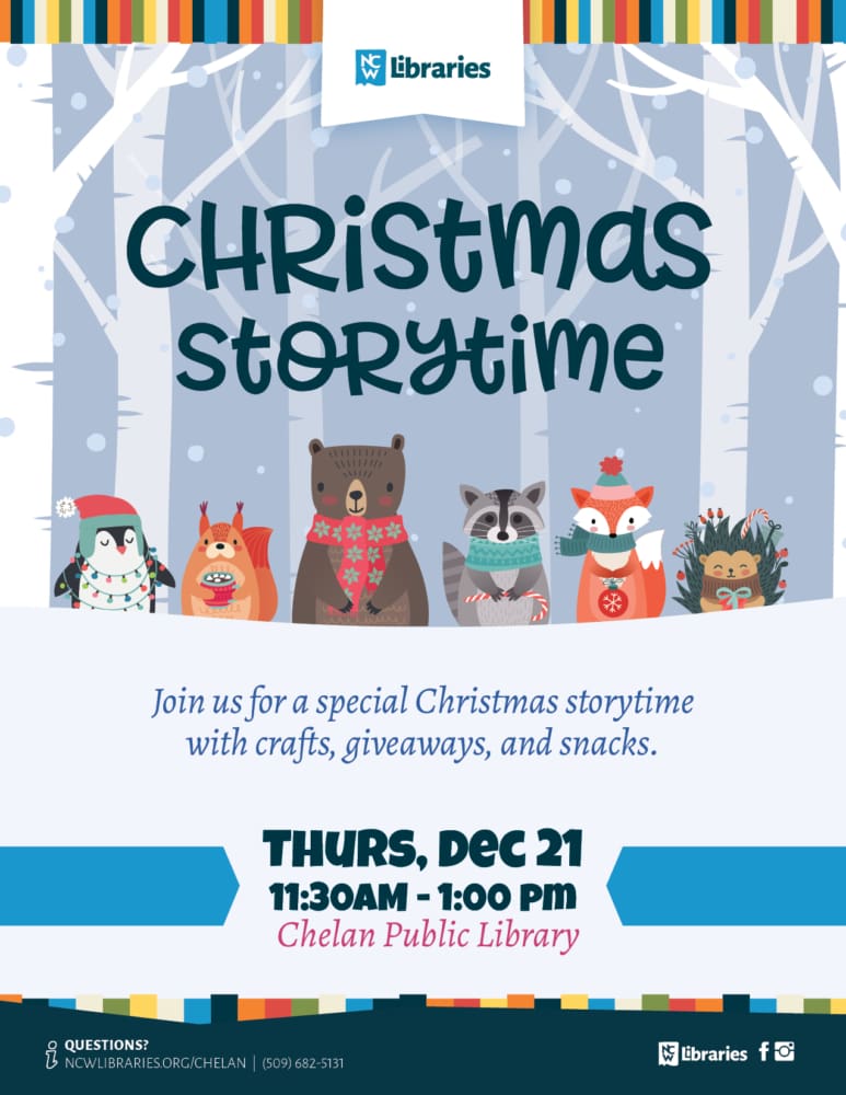 Join the Chelan Public Library for a special Christmas storytime with crafts, giveaways, and snacks.