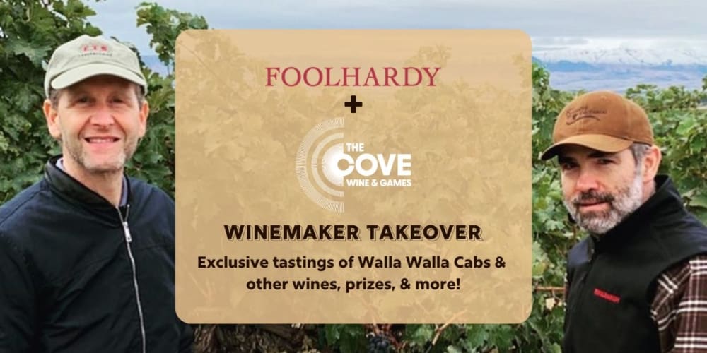 Join us at The Cove on July 18th from 5-8pm for a Winemaker Takeover with Jonathan from Foolhardy Vintners! Foolhardy Vintners Co-Founder, Jonathan Edelman, will be visiting The Cove and taking over the bar! He will be pouring Foolhardy’s Walla Walla Cabs and other exclusive selections. Bottle purchases will be available as well as an opportunity to mingle with the winemaker and a chance to win some awesome prizes! Foolhardy is a boutique winery focused on small-lot Cabernet Sauvignon from the Columbia Valley. We can’t wait to see you there!!