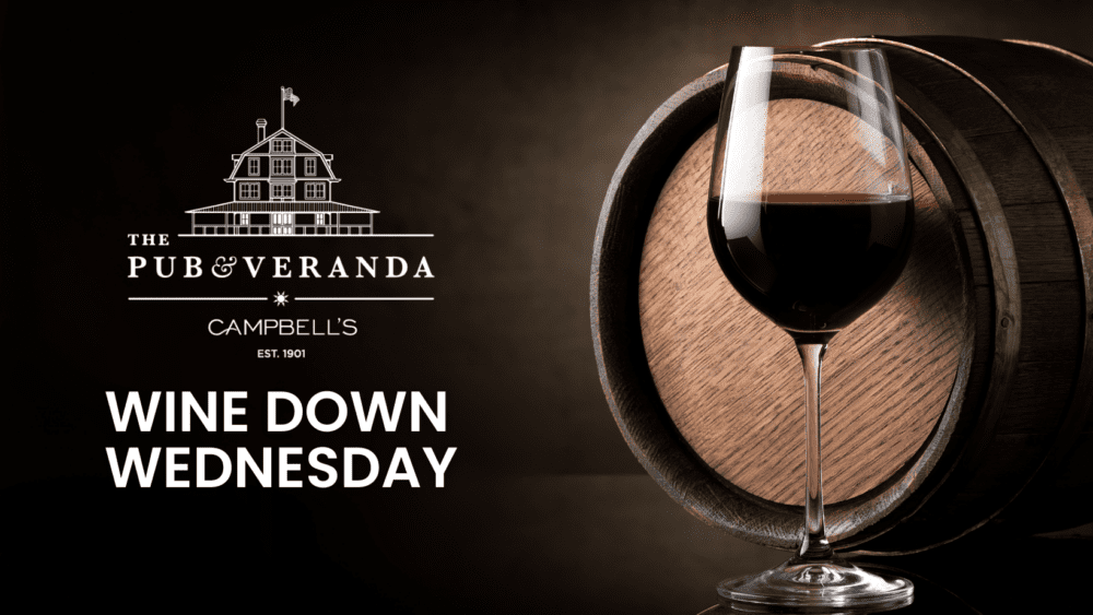 Join us every Wednesday for Wine Down Wednesday at the Pub & Veranda! 50% off select bottles and 20% off ALL glass pours.