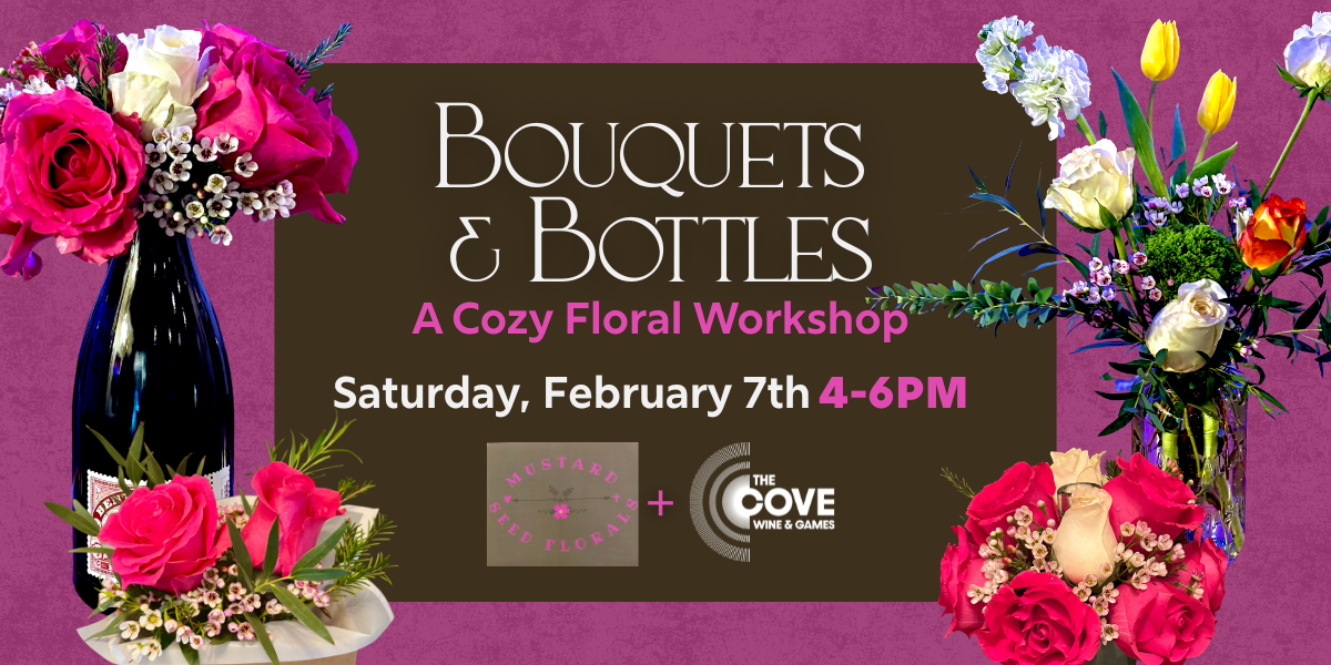 Sip wine, arrange beautiful flowers, and socialize at The Cove! Join Carmen Jones, owner of Mustard Seed Floral, for a hands-on bouquet workshop using fresh flowers and guidance from a brand-new Chelan florist! With only 15 spots, it’s the perfect laid-back night for wine, blooms, and hands-on fun. 🌸🍷 📅 Saturday, February 7th ⏰ 4–6 PM 🎟️ $55 📍 The Cove Wine & Games