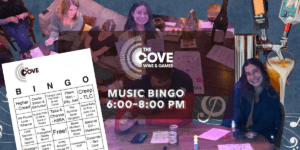 We will be hosting Music BINGO every Thursday night at 6 pm!Instead of numbers, you’re listening for songs! When a song on your card plays, mark it off, sing along, and race to be the first to shout BINGO! Free to play with super fun prizes! Especially for the blackout winner! Make a reservation & let the games begin! Email wonder@insidethecove.com to reserve your spot.